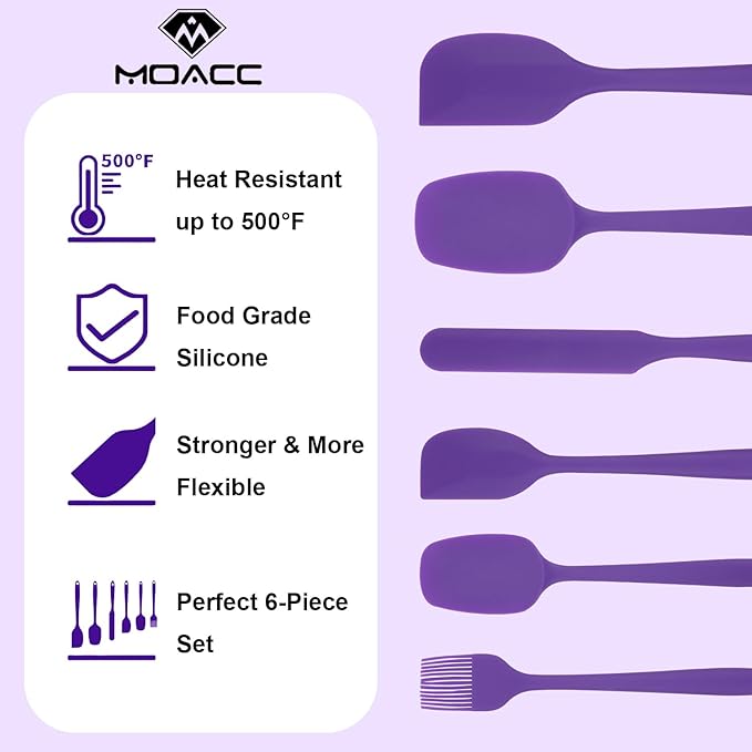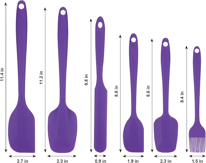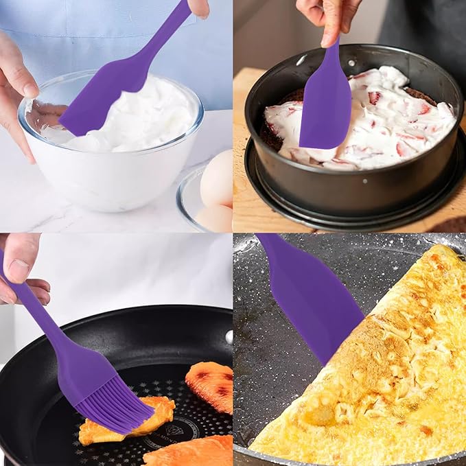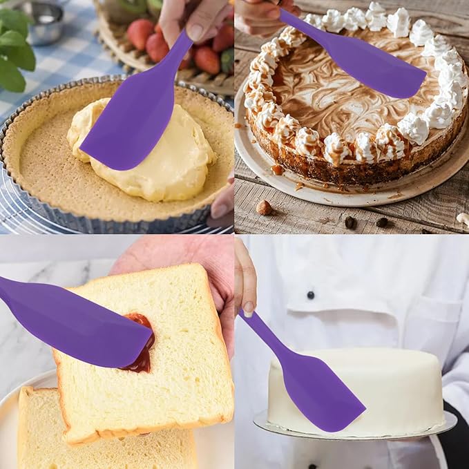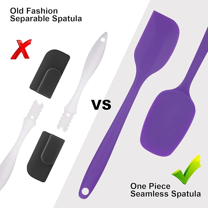 Silicone Spatulas Set, Rubber Spoon Spatula Heat Resistant Spoonula One Piece Design Seamless Spatula Non-Stick Scrapers Baking Mixing Tool (Purple)