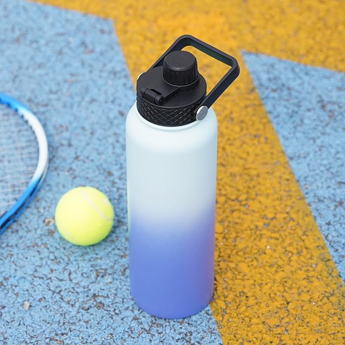 BJPKPK Insulated Water Bottles with Straw Lid, 40oz Cold & Hot Thermo, Stainless Steel Metal Water Bottle with 3 Lids, Reusable Thermo, Cups, Mugs, Tumblers -Sky