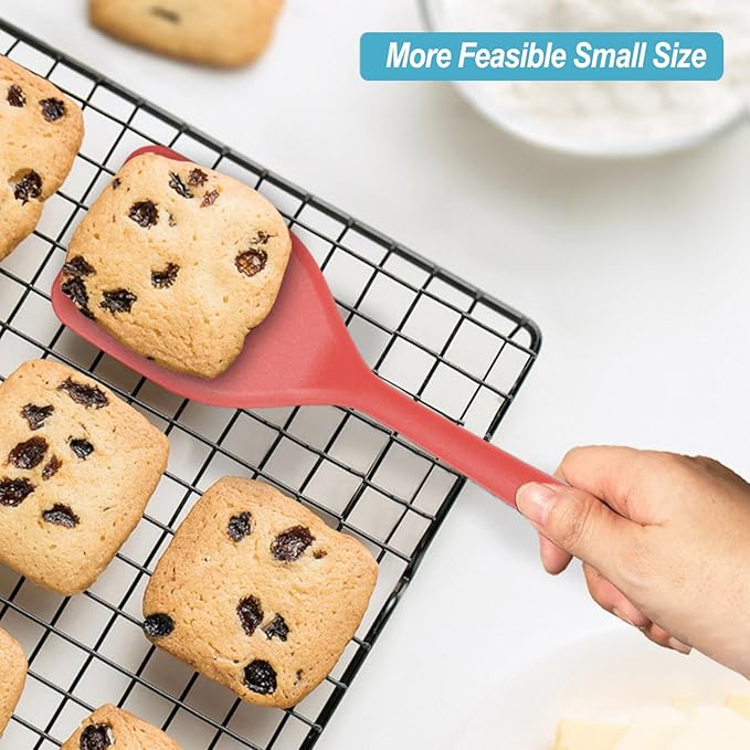Silicone Spatula Turner Set, High Heat Resistant Spatulas with Seamless One Piece Design, Nonstick Rubber Flippers Utensils for Baking & Cooking,BPA-Free, Red, 11 IN