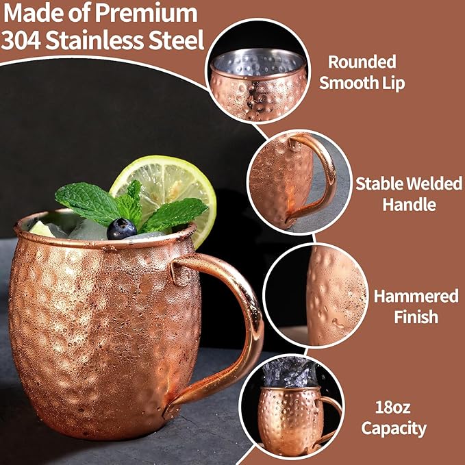 About This ★Food Safe Material - Each moscow mule mug is made from 304 stainless steel with mirror finish,gives shiny,... Read more