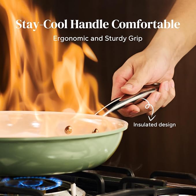 Redchef Non Stick Ceramic Frying Pan Set, Non Toxic Ceramic Pans for Cooking, 8" 9.5" 11" Skillet Set, No PFAS & PTFE & PFOA with Stainless Steel Handle, Dishwasher & Oven Safe Max up to 842°F (Green)