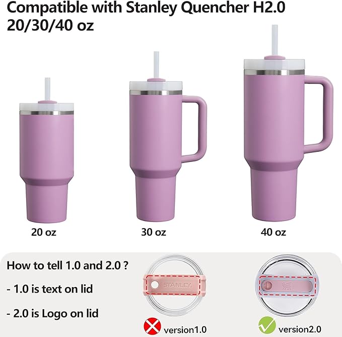 Silicone Spill Stopper Set Compatible with Stanley Cup 2.0 30oz & 40oz with Straw Cover (Set of 2, Lilac)