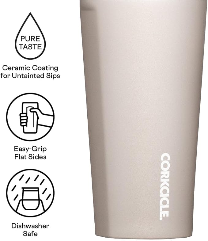 Corkcicle Pure Taste Tumbler - Stainless Steel Insulated Cup With Lid - Non-Slip Silicone Base - Ceramic Interior Coating - Durable Travel Mug - Dishwasher Safe - BPA Free - 16 oz - Latte/Oat Milk