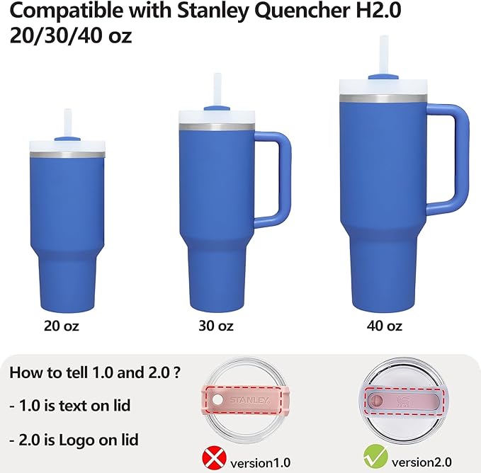Silicone Spill Stopper Set Compatible with Stanley Cup 2.0 30oz & 40oz with Straw Cover (Set of 2, Iris)