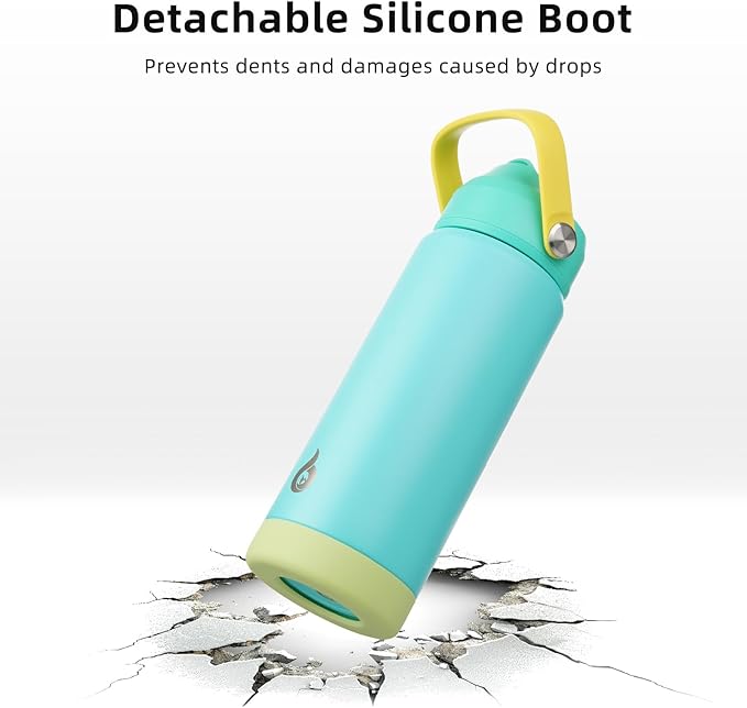 BJPKPK Insulated Water Bottle with Straw Lid, 18oz Thermo Water Bottles, Flex Handle & Non-slip Boot, BPA Free Leak Proof Stainless Steel Metal Thermo, Tumblers, Cups,Twilight Blue