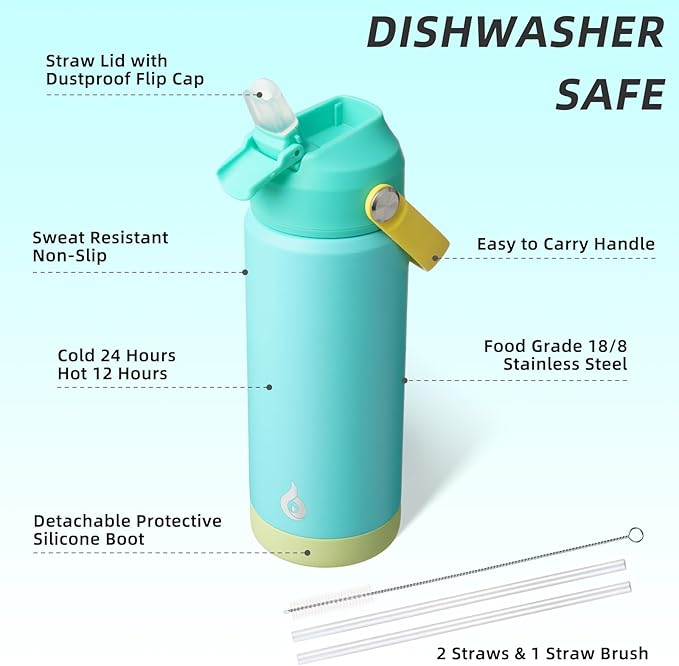 About This INSULATED WATER BOTTLE WITH UPGRADED STRAW LID: BJPKPK insulated water bottle with straw lid use hidden flip-top Straw... Read more