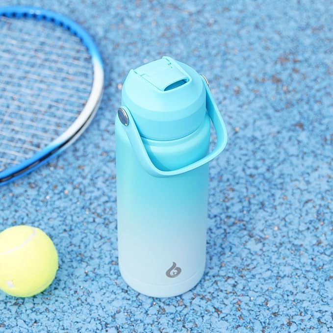 BJPKPK Insulated Water Bottle with Straw Lid, 12oz Thermo Water Bottles, Flex Handle & Non-slip Boot, BPA Free Leak Proof Stainless Steel Metal Thermo, Tumblers, Cups, Sea Salt