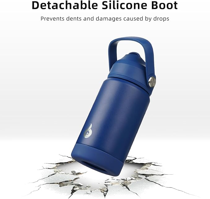 BJPKPK Insulated Water Bottle with Straw Lid, 12oz Thermo Water Bottles, Flex Handle & Non-slip Boot, BPA Free Leak Proof Stainless Steel Metal Thermo, Tumblers, Cups,Klein Blue