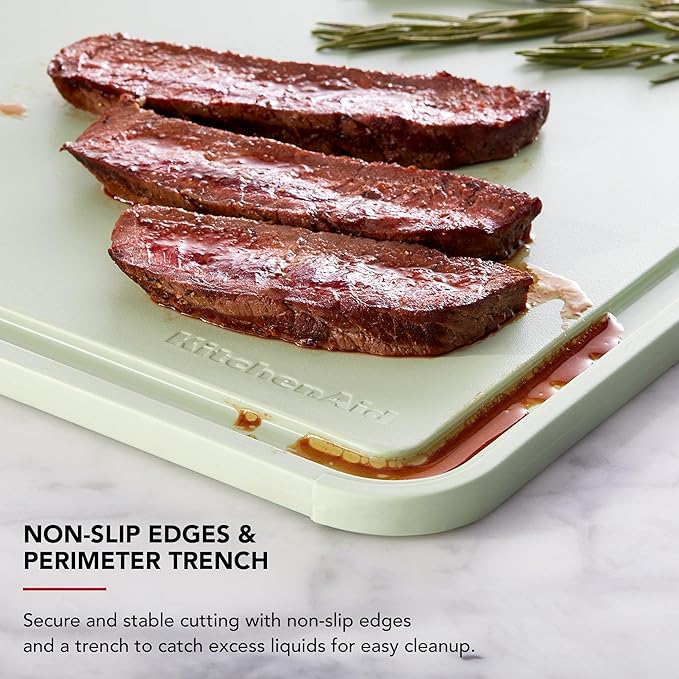 KitchenAid Classic Plastic Cutting Board with Perimeter Trench and Non Slip Edges, Dishwasher Safe, 12 inch x 18 inch, Green