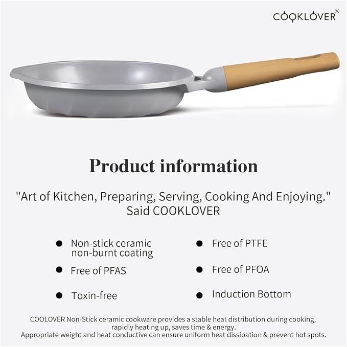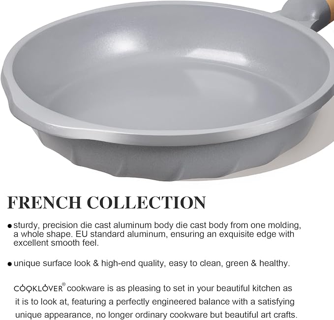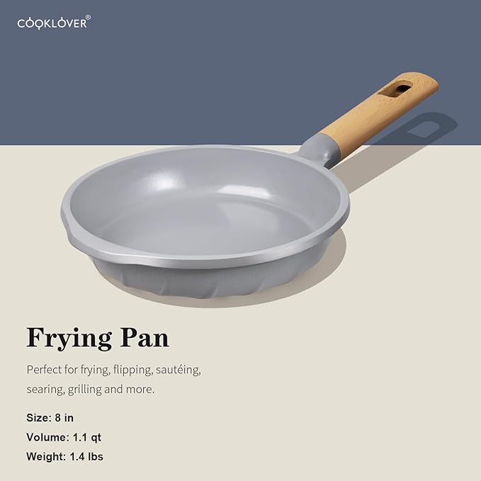 COOKLOVER Nonstick Frying Pan 100% PFOA Free Cookware Induction Skillet Stir Fry Pan (Gray, 7.9 inch)