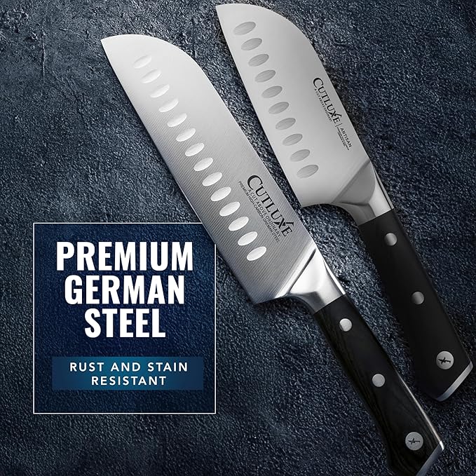 Cutluxe Santoku Knife Set – 7" Chopping Knife and 5" Vegetable Knife – Multipurpose Kitchen Knives – High Carbon German Steel, Full Tang & Ergonomic Handle Design – Artisan Series