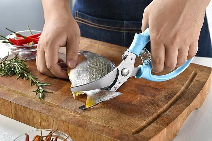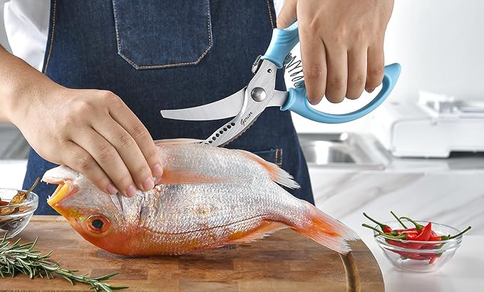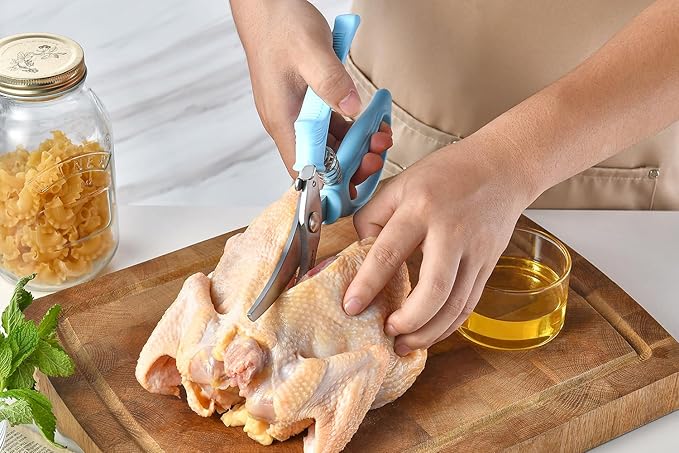 Heavy Duty Poultry Shears - Kitchen Scissors for Cutting Chicken, Poultry, Game, Meat - Chopping Vegetable - Spring Loaded - Blue