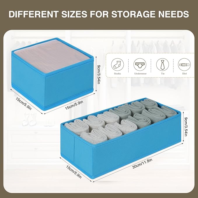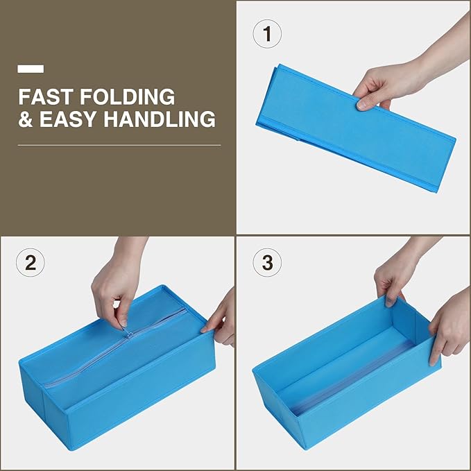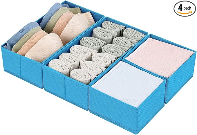 DIMJ Drawer Organizers - Set of 4 Fabric Closet Organizers and Storage, Drawer Dividers for Baby Clothes, Socks, Belt, Tie (Blue)