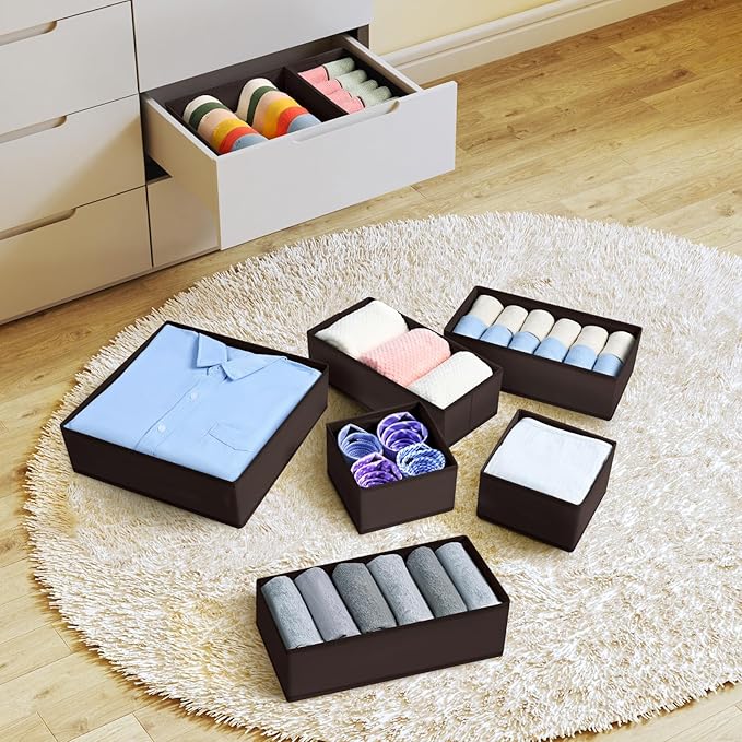DIMJ Drawer Organizer Clothes, 12 Pack Underwear Organizer, Foldable Closet Organizers, Sock Organizer Bra Organizer, Fabric Dresser Organizer for Clothes, Bra, Socks, Tie (Brown)