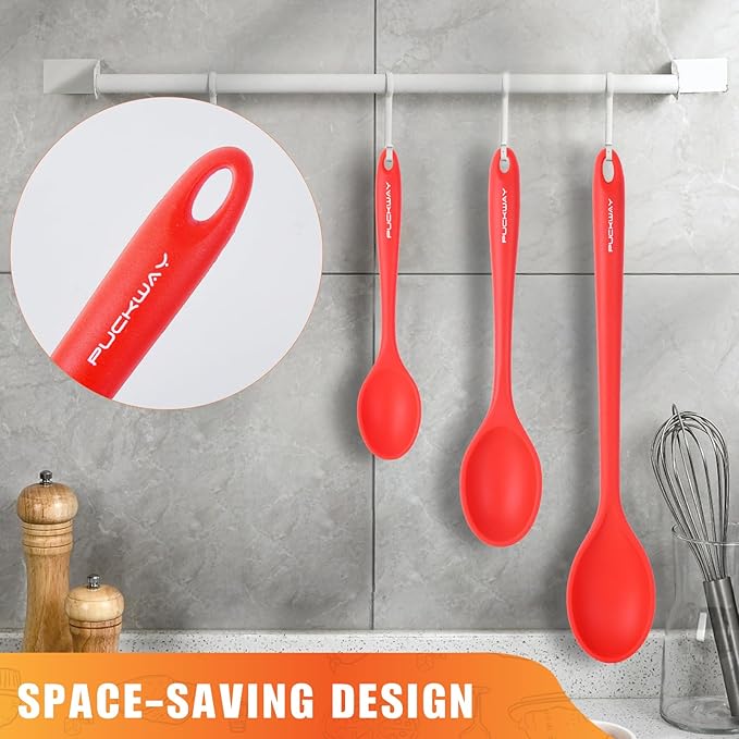 3 Pcs Silicone Spoons Set of 7.9 10.6 14.2 inch for Cooking, Heat Resistant Kitchen Spoons for Mixing, Stirring, and Serving, Small to Large Non Stick (Red)