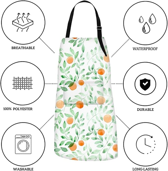 Britimes Green Leaves Fruits Orange Vintage Apron Home Kitchen Cooking Baking Gardening for Women Men with Pockets 32x28 inch