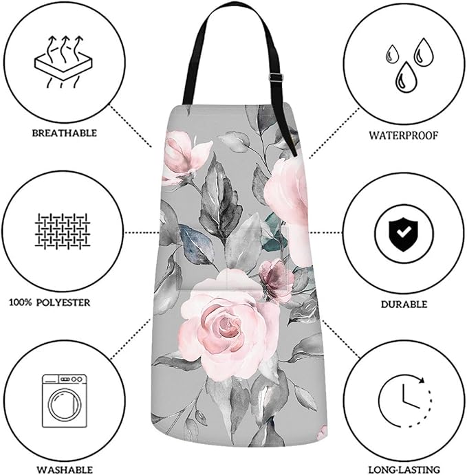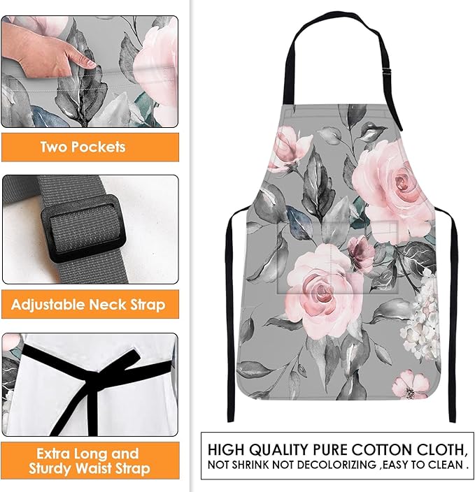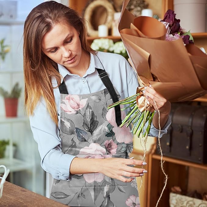 Britimes Spring Flowers Leaves Floral Apron Home Kitchen Cooking Baking Gardening for Women Men with Pockets 32x28 inch