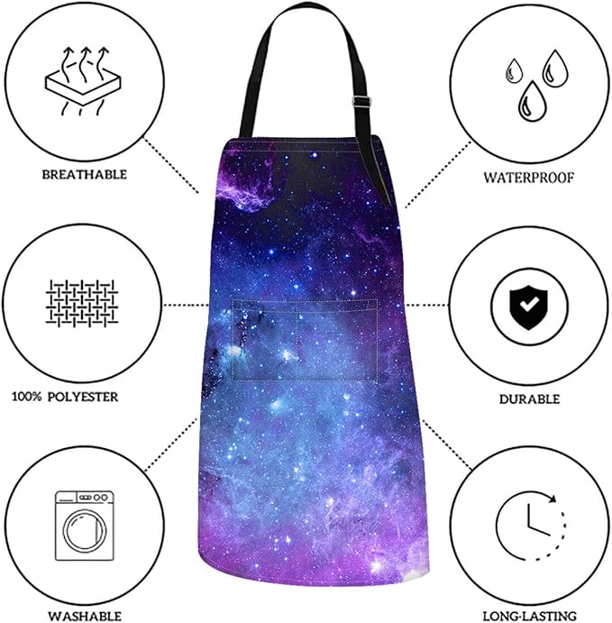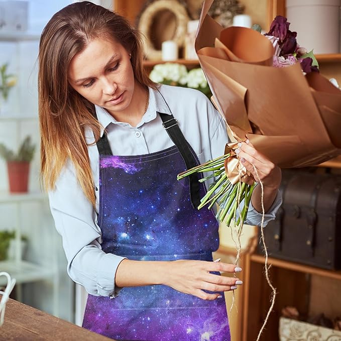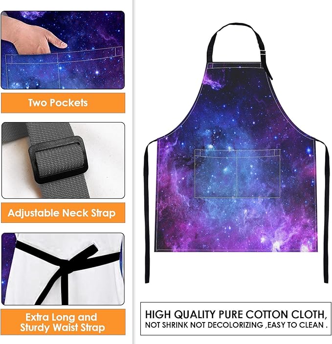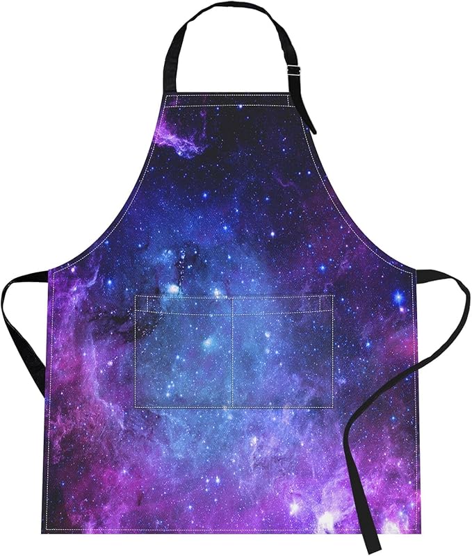 Britimes Space Purple Universe Planet Apron Home Kitchen Cooking Baking Gardening for Women Men with Pockets 32x28 inch