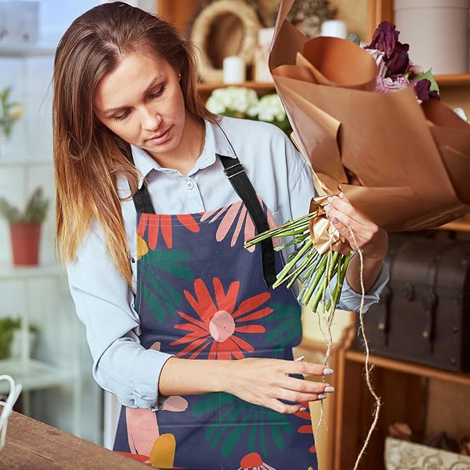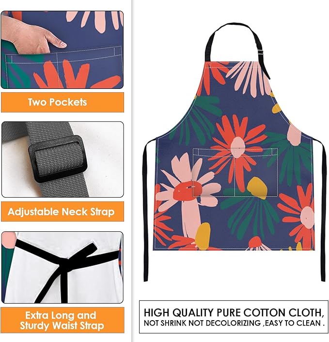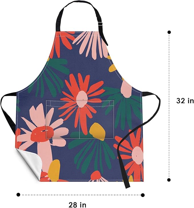 Britimes Floral Flower Spring Leaf Apron Home Kitchen Cooking Baking Gardening for Women Men with Pockets 32x28 inch