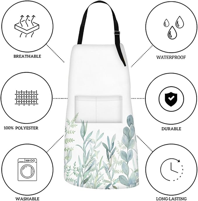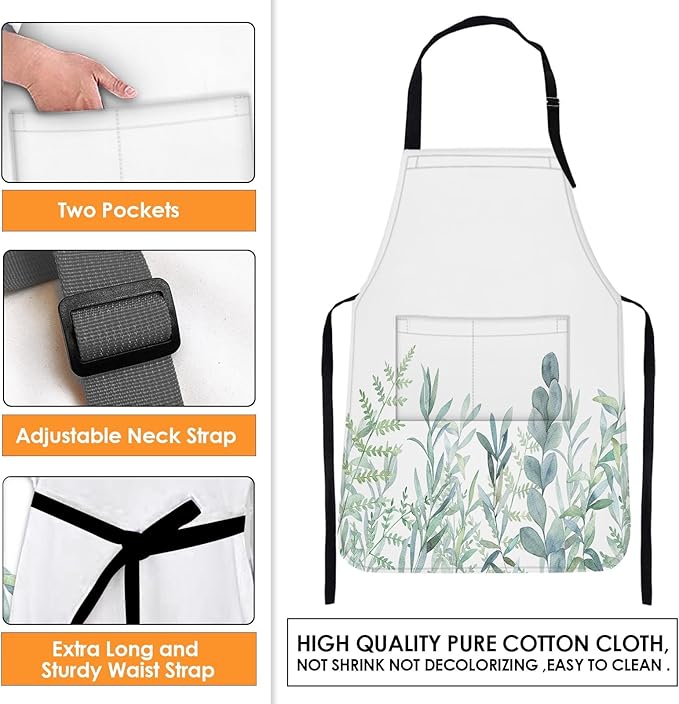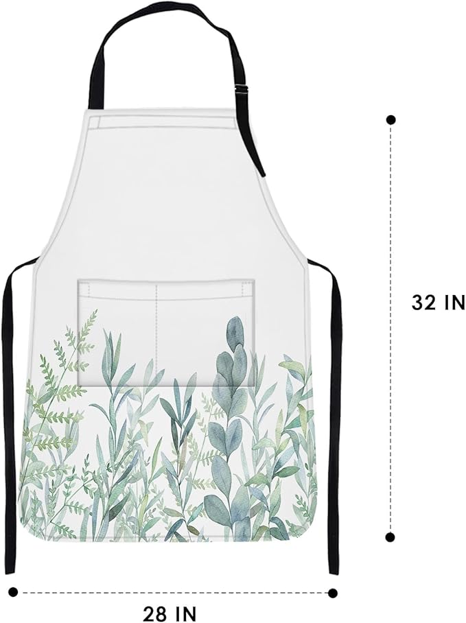 Britimes Watercolor Floral Botanical Apron Home Kitchen Cooking Baking Gardening for Women Men with Pockets 32x28 inch