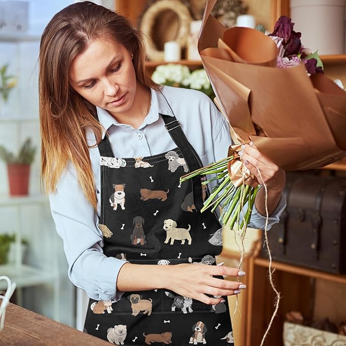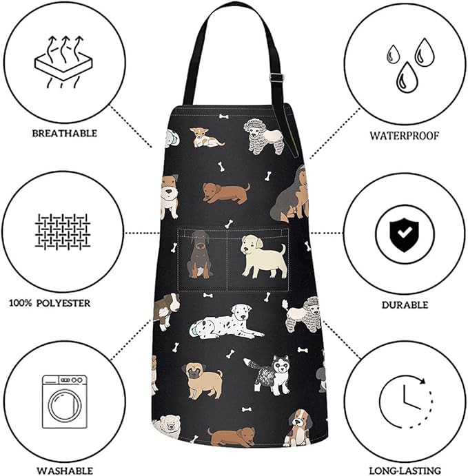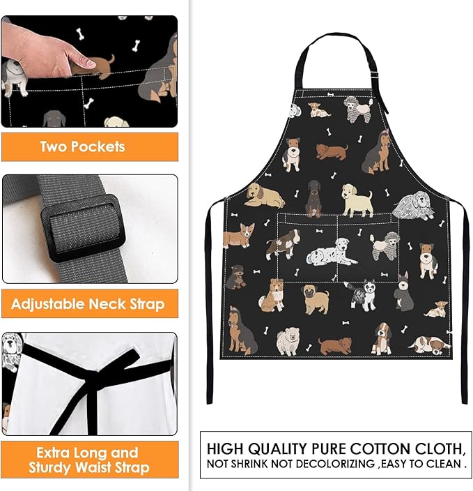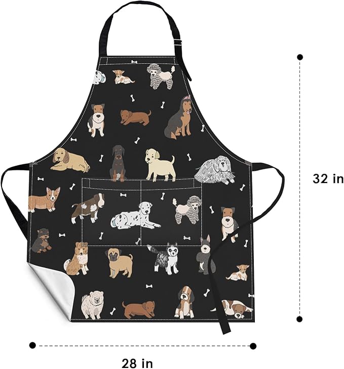 Britimes Doodle Puppy Dog Labrador Apron Home Kitchen Cooking Baking Gardening for Women Men with Pockets 32x28 inch