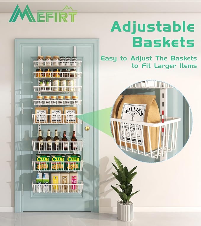 Over The Door Pantry Organizer, Pantry Organization and Storage, 8-Tier Deep Baskets Hanging Heavy-Duty Metal, Wall Spice Rack Seasoning Shelves for Home & Kitchen, Laundry Room Bathroom, White