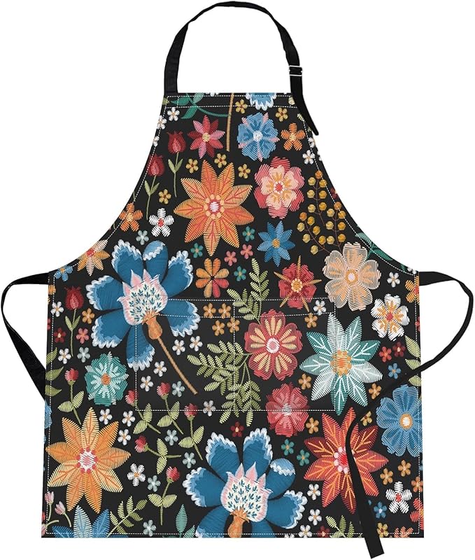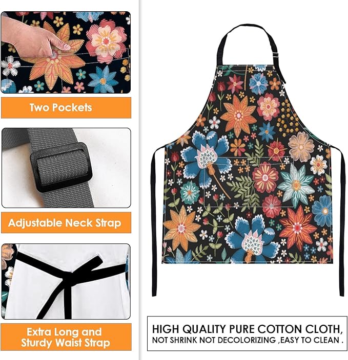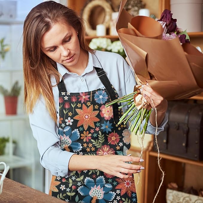 Britimes Apron Home Kitchen Cooking Baking Gardening for Women Men With Pockets Colorful Floral Flower Botanical Summer Vintage 32x28 inch
