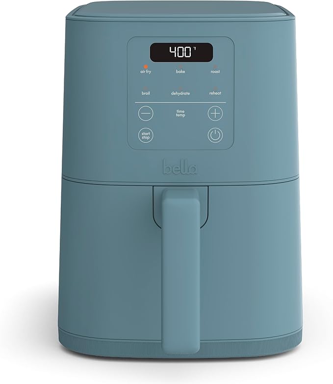 bella 4Qt Slim Air Fryer, Fits-anywhere Kitchenware, EverGood Ceramic Nonstick Coating, Adjustable Temperature, 6 Preset Cooking Options, 60 Min Auto Shutoff w Audible Tone, 3.3lb Capacity, Surf