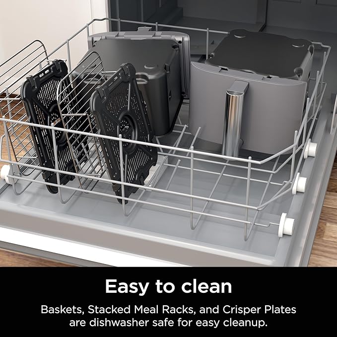 Ninja Air Fryer, 10QT DoubleStack XL 2-Basket, Compact Design, Cooks 5lb Whole Chicken, Feeds Up to 8 People, 6-in-1 Air Fryer, Roast, Bake & More, Easy to Clean, Dishwasher Safe Parts, Grey, SL401