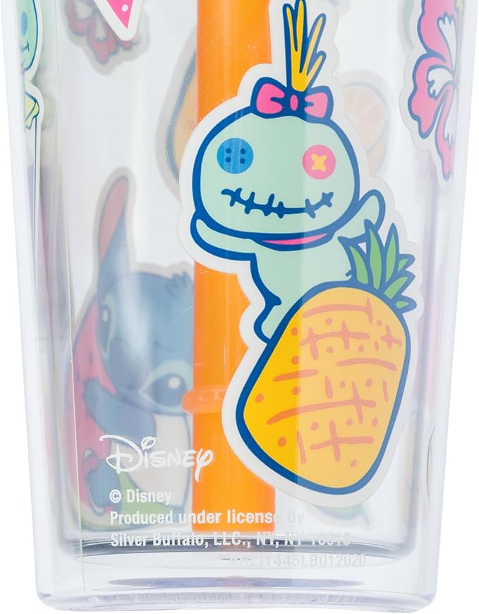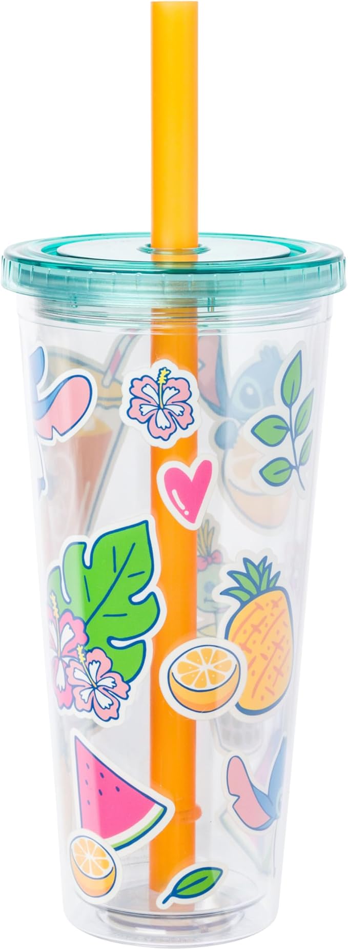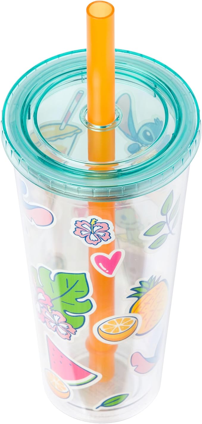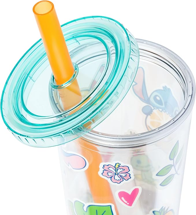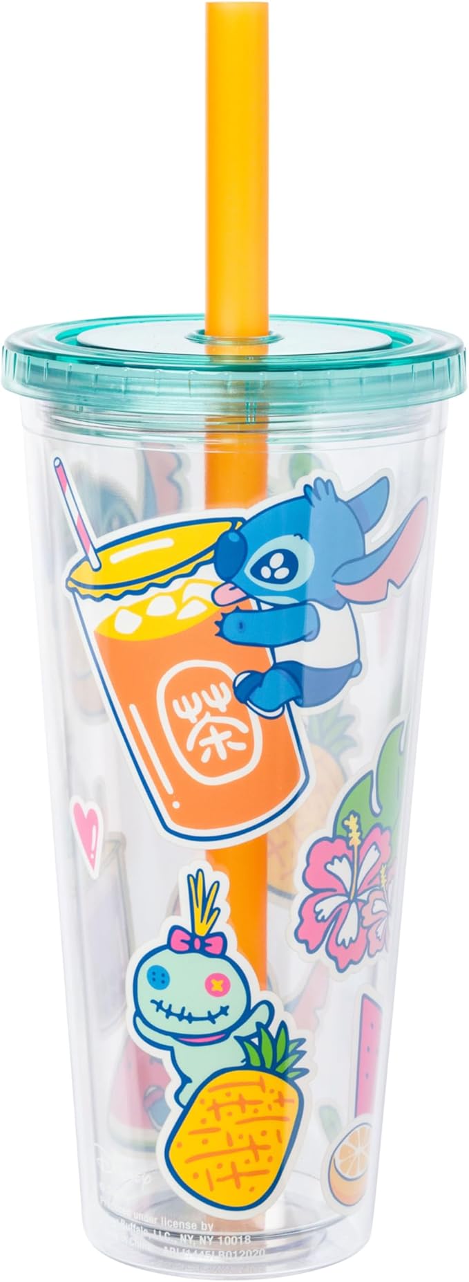 Silver Buffalo Disney Lilo and Stitch Cute Decals Featuring Scrump Plastic Boba Tumbler with Lid and Straw, 24 Ounces