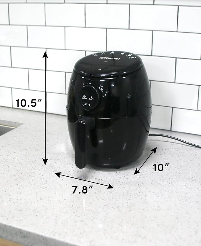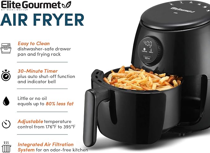 Elite Gourmet EAF-2612DX Personal 2.1Qt Compact Space Saving Programmable Hot Air Fryer, Oil-Less Healthy Cooker, Timer & Temperature Controls, 1000W, Black