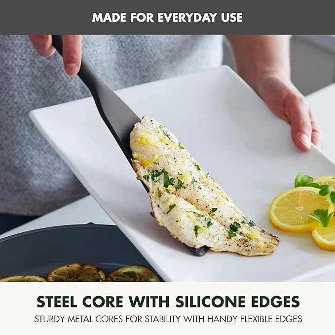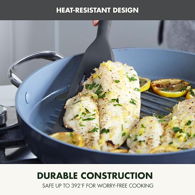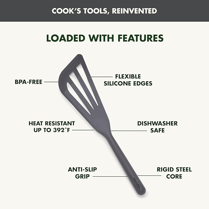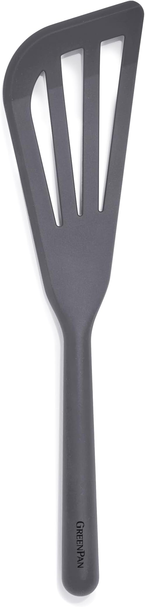 GreenPan Silicone Fish Turner Spatula, Slotted Cooking Kitchen Utensil, Flexible Rubber Nonstick Cookware, Rigid Steel Core, Heat-Resistant, Anti-Slip Handle, BPA-Free, Dishwasher Safe, Gray