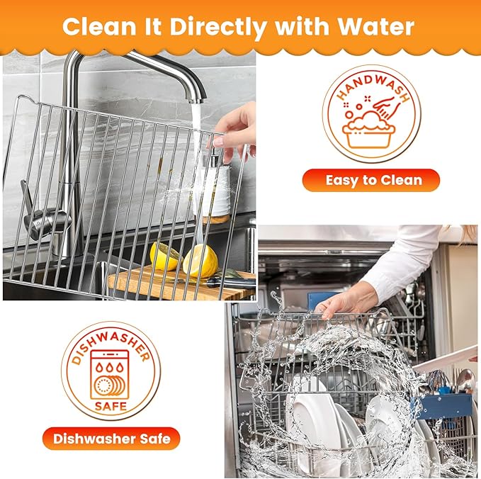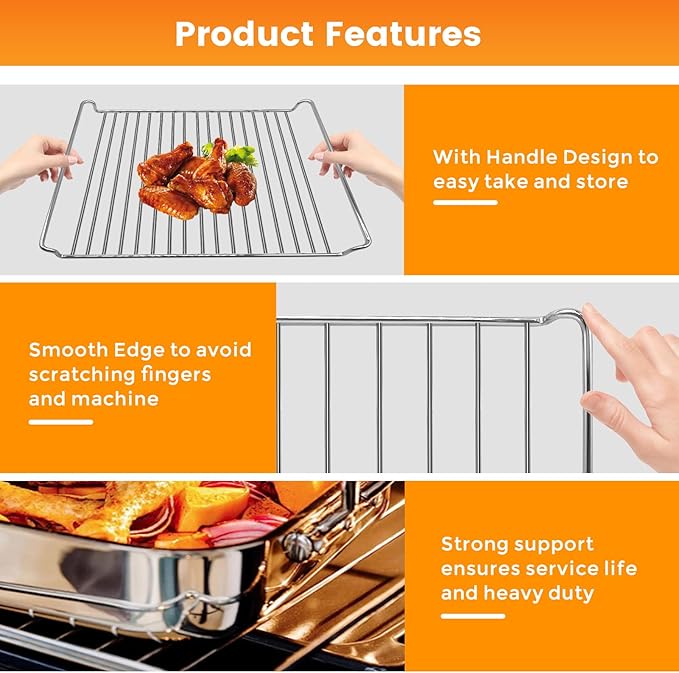 Air Fryer Rack for Cuisinart TOA-95 Air Fryer Convection Toaster Oven, 11.2''*10'' Air Fryer Stainless Steel Wire Rack Basket Tray Accessories Parts, Dishwasher Safes