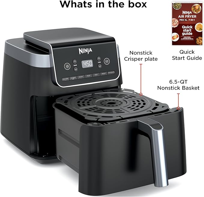 Ninja | Air Fryer Pro XL | 6.5QT Capacity fits up to 9lbs of Wings| 7-in-1 Max Crisp, Broil, Air Fry, Roast, Bake, Reheat & Dehydrate | Dishwasher Safe Parts | Space Saving | Grey | AF182AMZ