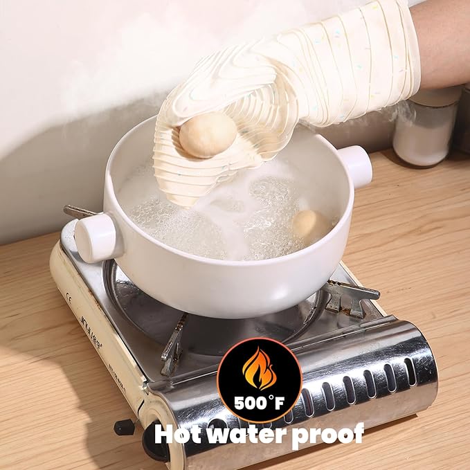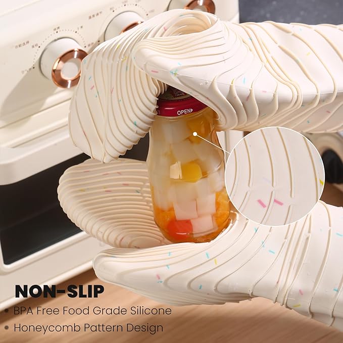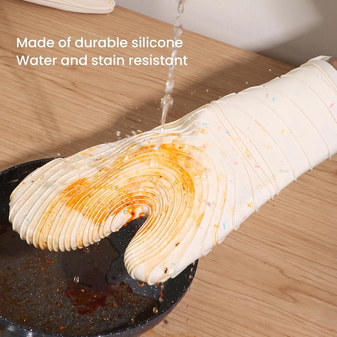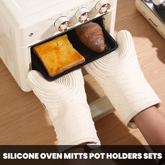 4 Pieces Oven Mitts and Pot Holders of Macaron Color Thickened Non-Slip Silicone Kitchen Gloves, Heat Resistant up to 500F, Essential for Kitchen Baking (makal-bai)