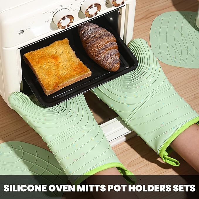 4 Pieces Oven Mitts and Pot Holders of Macaron Color Thickened Non-Slip Silicone Kitchen Gloves, Heat Resistant up to 500F, Essential for Kitchen Baking(makal-lv)
