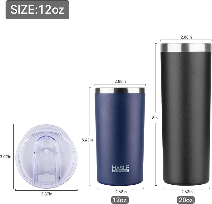 HASLE OUTFITTERS 12 oz Skinny Tumbler, Stainless Steel Insulated Slim Tumbler with Lid, Reusable Double Wall Travel Coffee Mug, Durable Powder Coated Travel Water Cup(Navy,1)