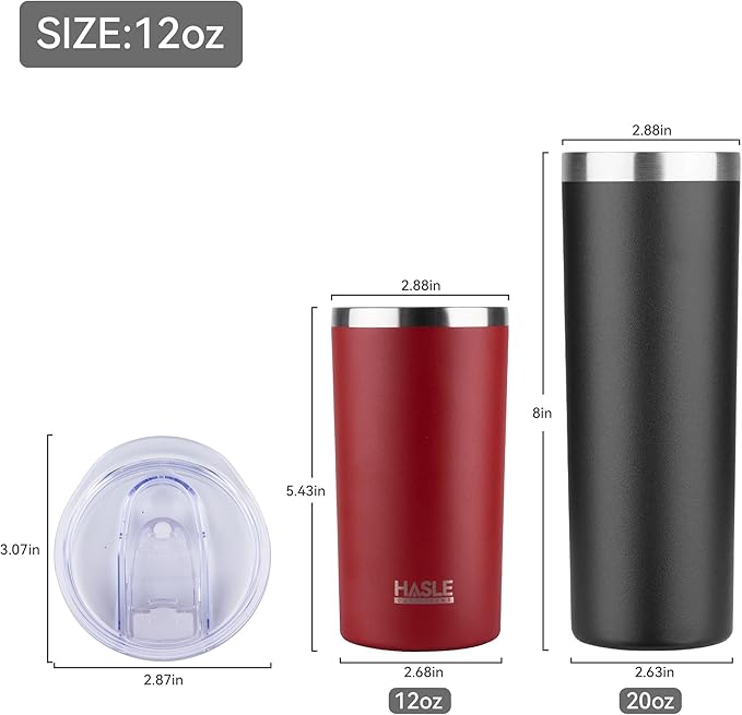 HASLE OUTFITTERS 12 oz Skinny Tumbler, Stainless Steel Insulated Slim Tumbler with Lid, Reusable Double Wall Travel Coffee Mug, Durable Powder Coated Travel Water Cup(Red,1)