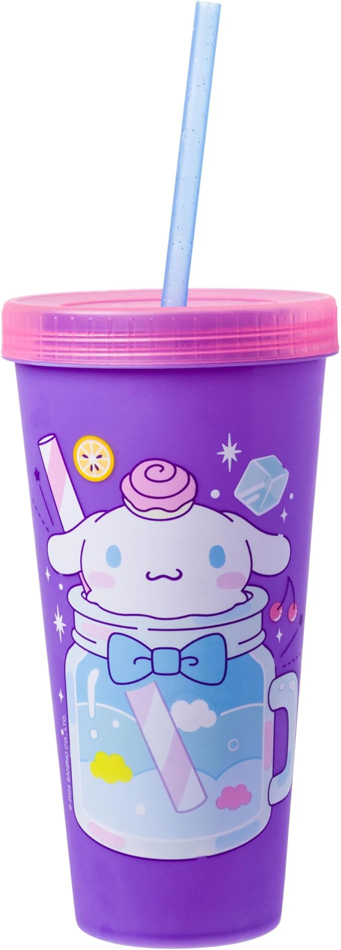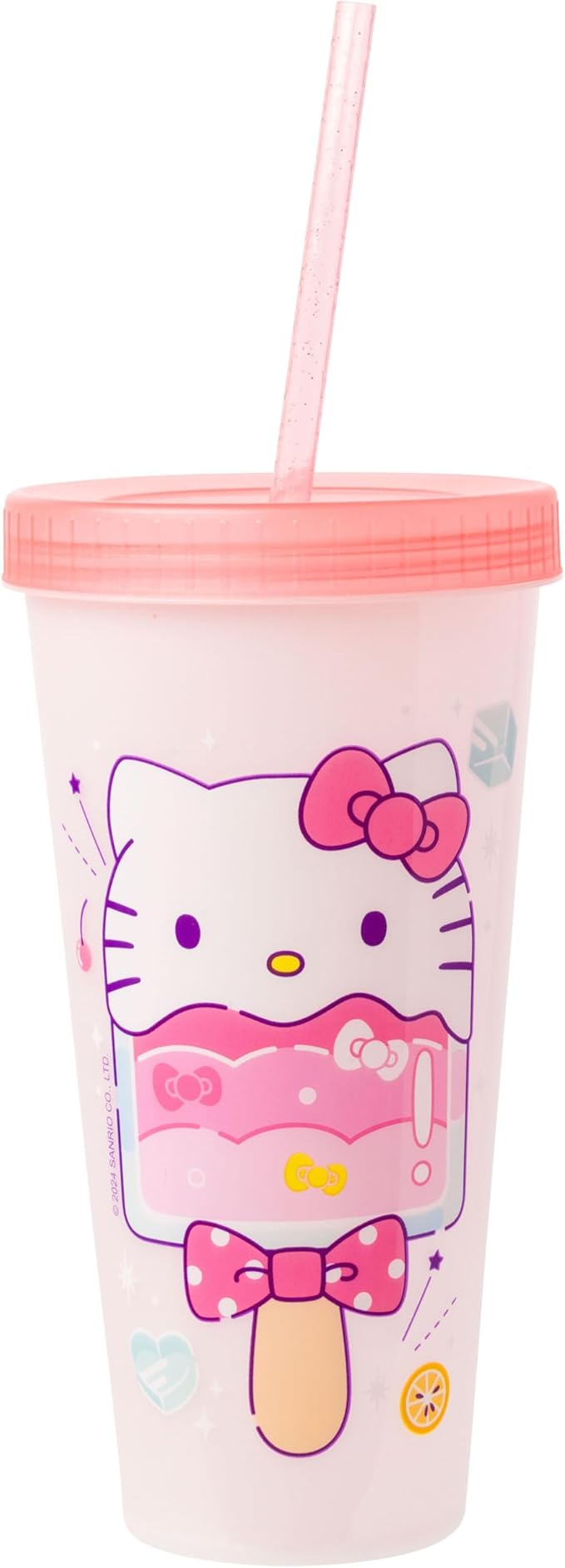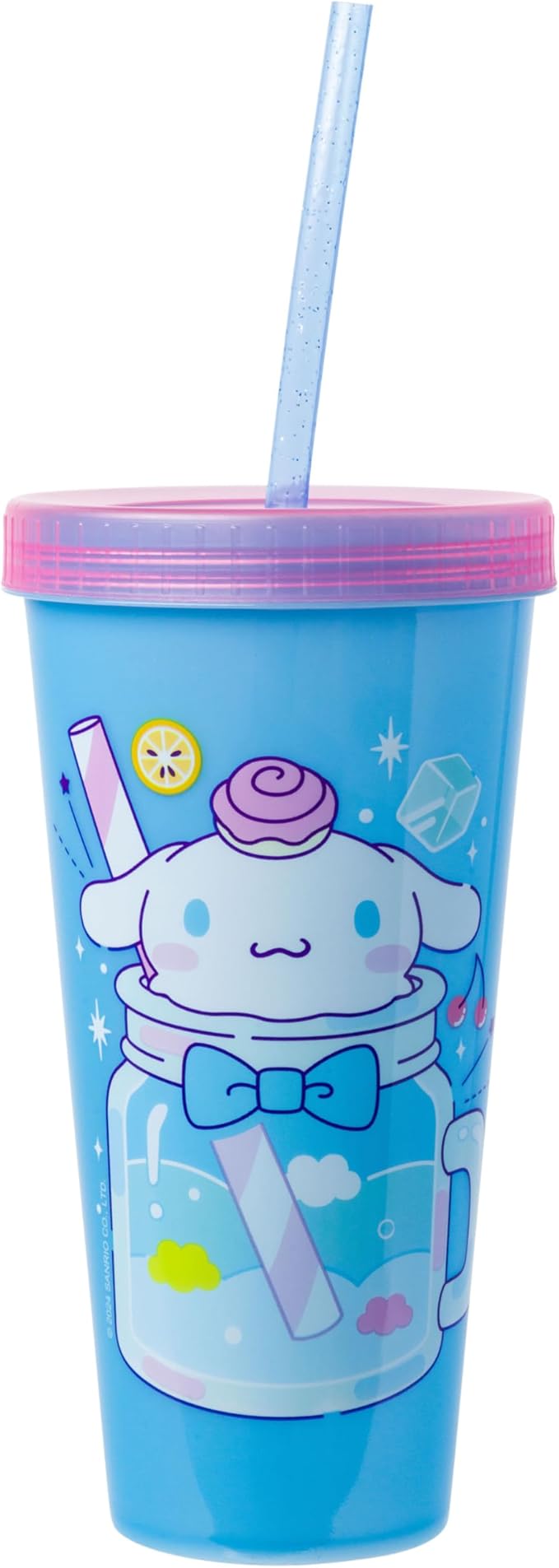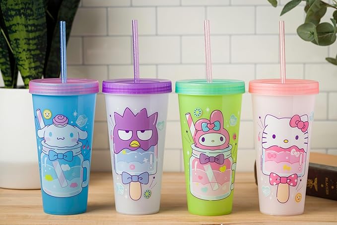 Silver Buffalo Sanrio Hello Kitty and Friends 4 Pack Color Changing Plastic Tumblers Featuring Hello Kitty, My Melody, Badtz Maru, and Cinnamoroll, 24 Ounce