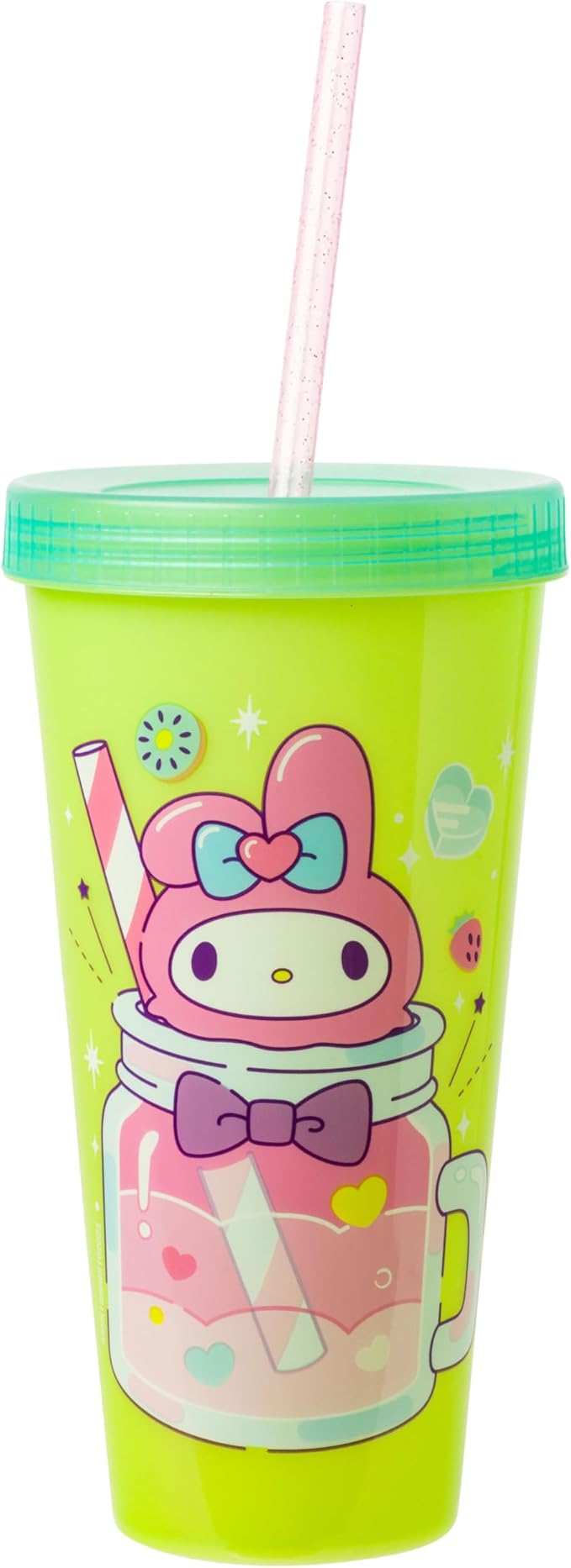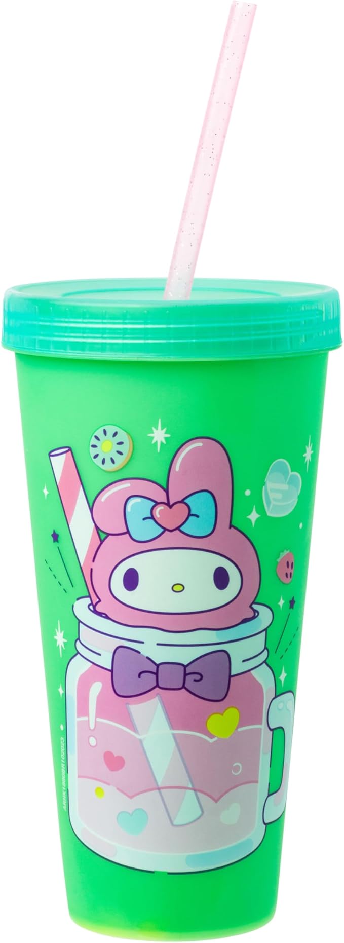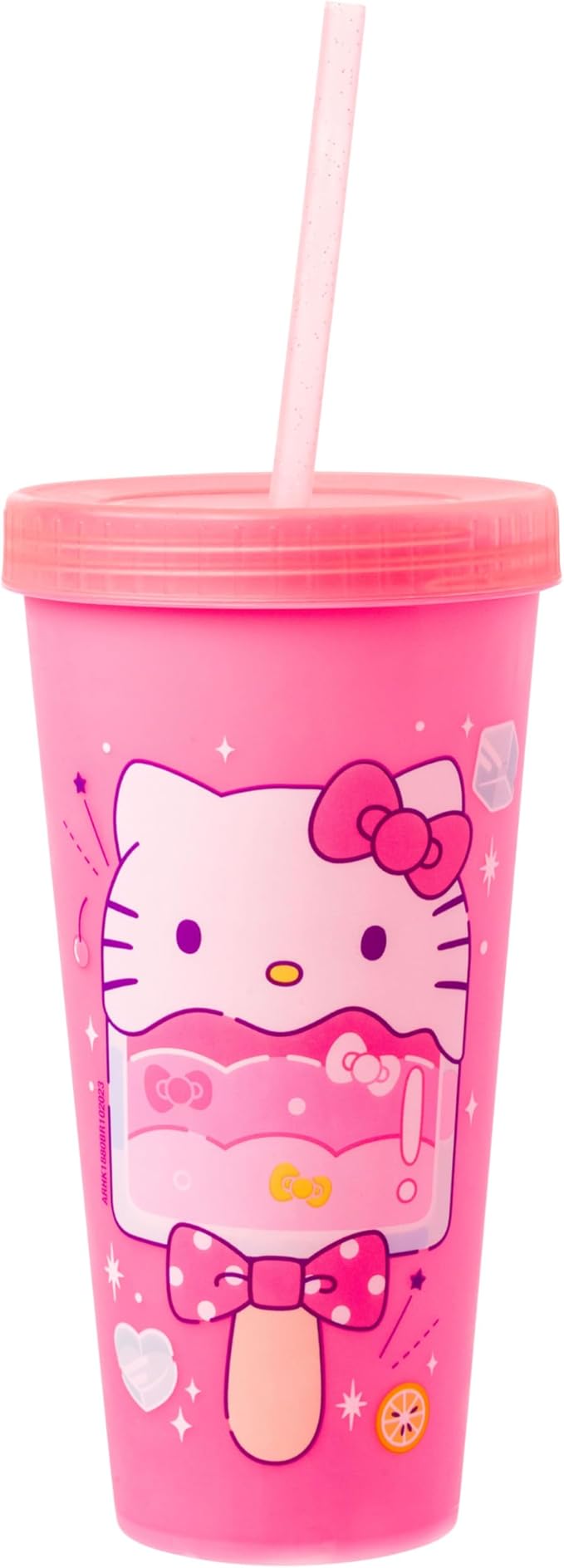 Silver Buffalo Sanrio Hello Kitty and Friends 4 Pack Color Changing Plastic Tumblers Featuring Hello Kitty, My Melody, Badtz Maru, and Cinnamoroll, 24 Ounce