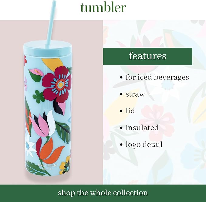 kate spade new york Acrylic Tumbler with Lid and Straw, 24 oz Tumbler, Slim Double Wall Tumbler (Safari Floral)