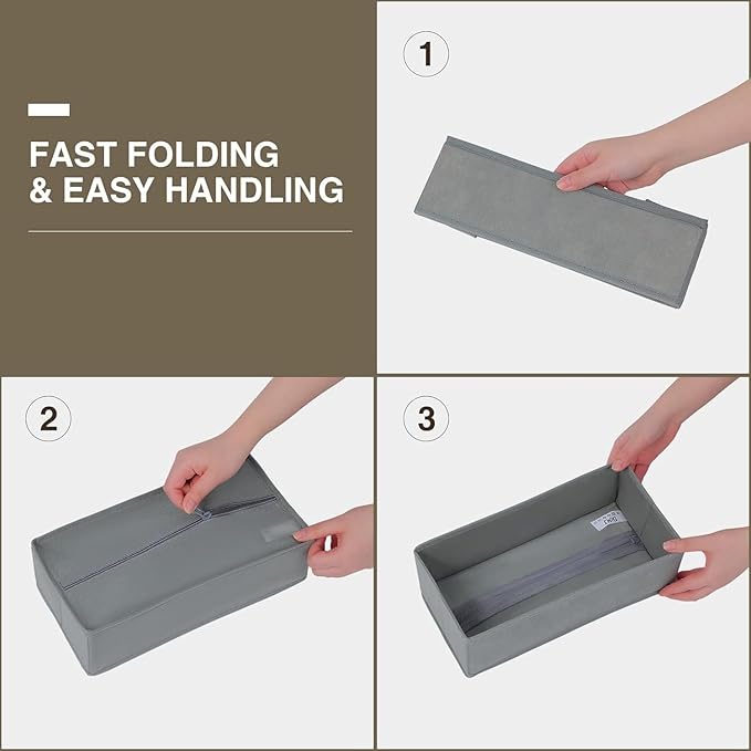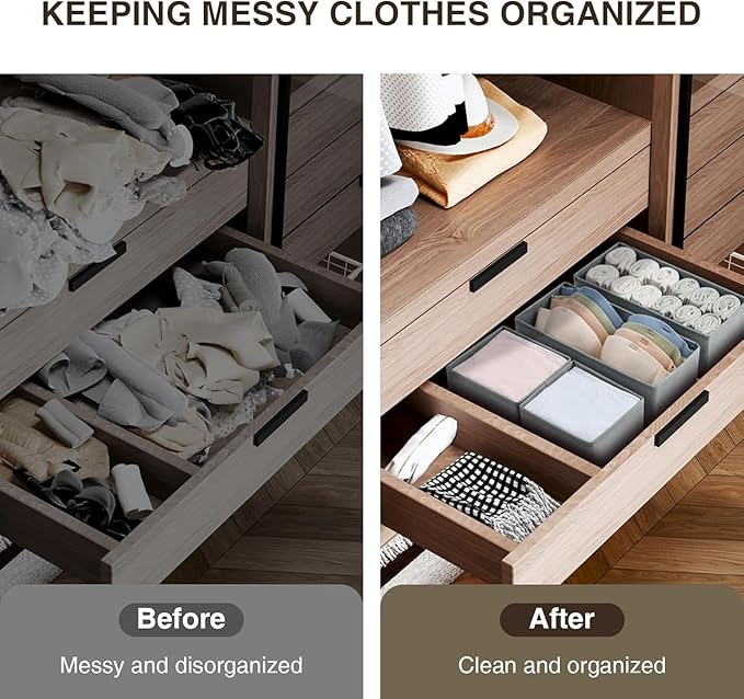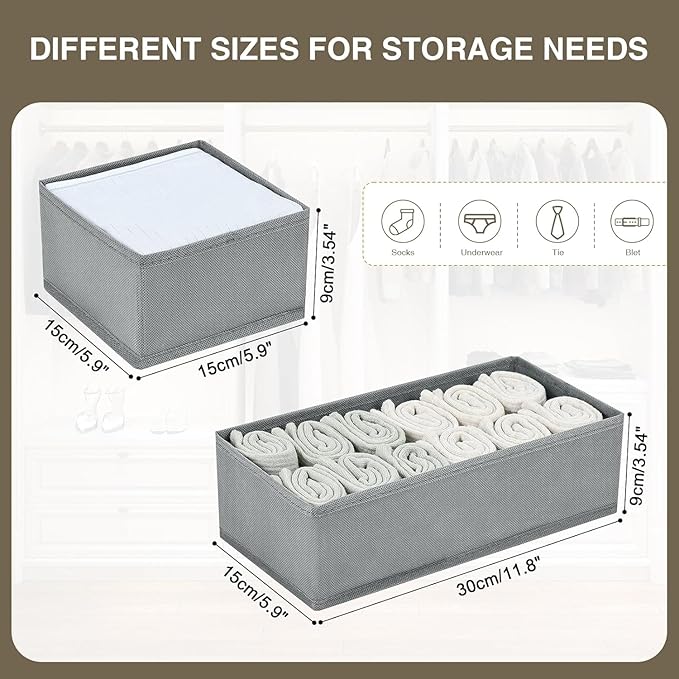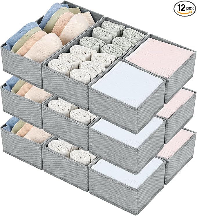 DIMJ Drawer Organizers for Clothing, Set of 12 Dresser Drawer Organizers, Fabric Closet Organizers and Storage, Drawer Dividers for Baby Clothes, Socks, Belt, Tie (Grey)