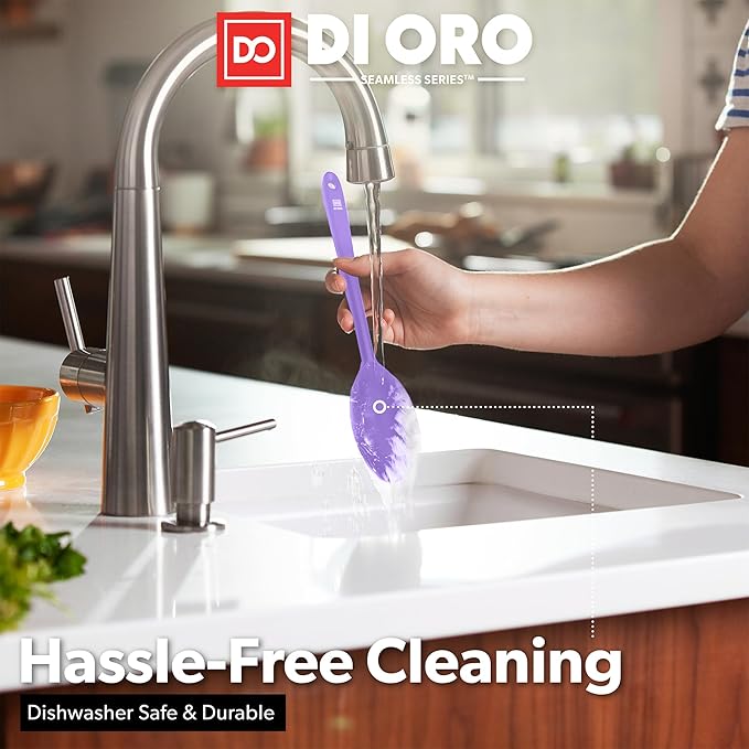 DI ORO Silicone Spoons for Cooking - Large Kitchen Spoons for Mixing, Serving & Stirring - 600°F Heat-Resistant Non Stick Utensils – Big Solid & Slotted Basting Spoon - Dishwasher Safe (2pc, Lavender)