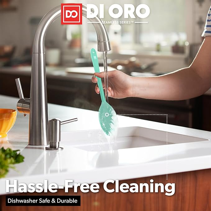 DI ORO Silicone Spoons for Cooking - Large Kitchen Spoons for Mixing, Serving, & Stirring - 600°F Heat-Resistant Non Stick Utensils – Big Solid & Slotted Basting Spoons - Dishwasher Safe (2pc, Mint)