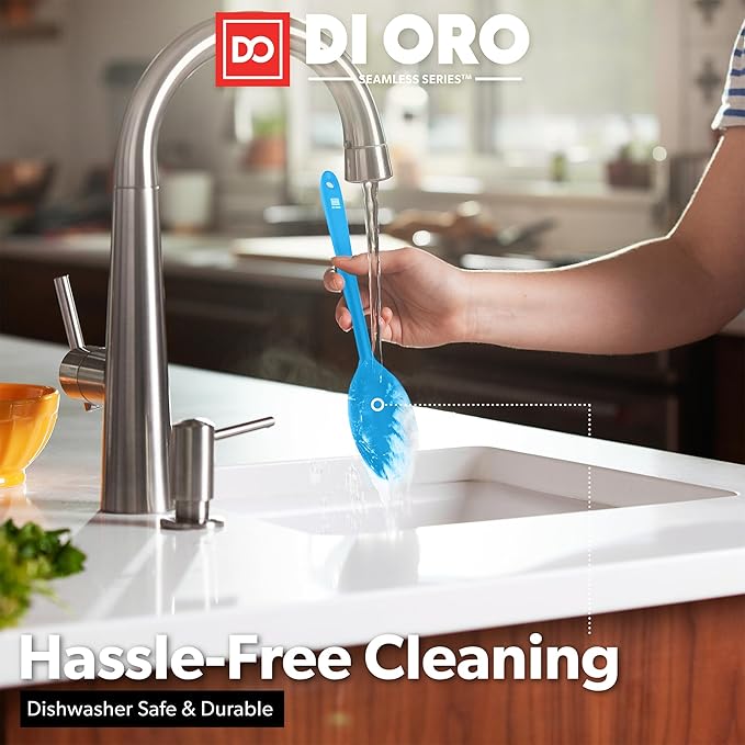 DI ORO Silicone Mixing & Serving Spoons - Large Heat-Resistant Non Stick Utensils Big Solid & Slotted Basting Spoons - Dishwasher Safe (2pc, Blue)