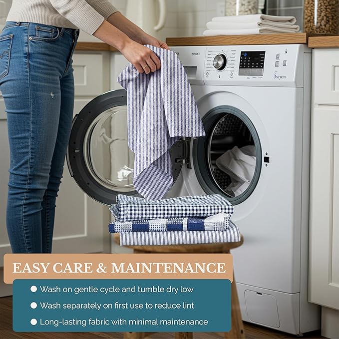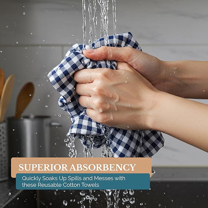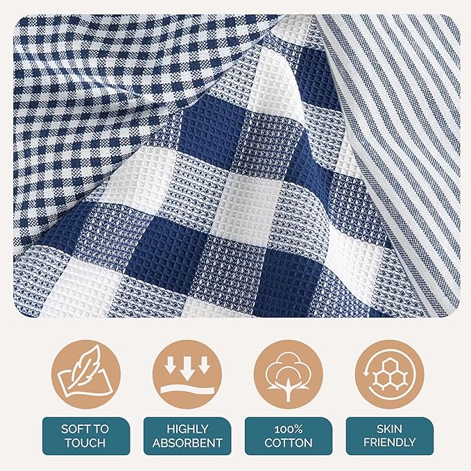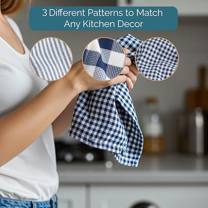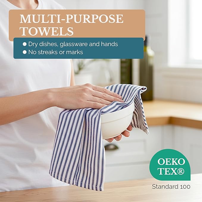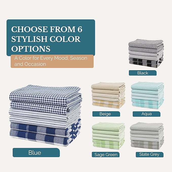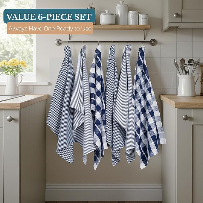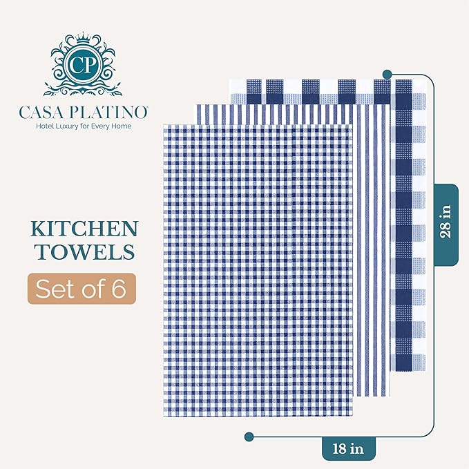Casa Platino 6PC Kitchen Towels for Washing Dishes, 100% Cotton 18"x28" Kitchen Towels, Super Absorbent, Designed for Rustic Kitchens, Guest Cooking, or Tea-Time Setups – Blue