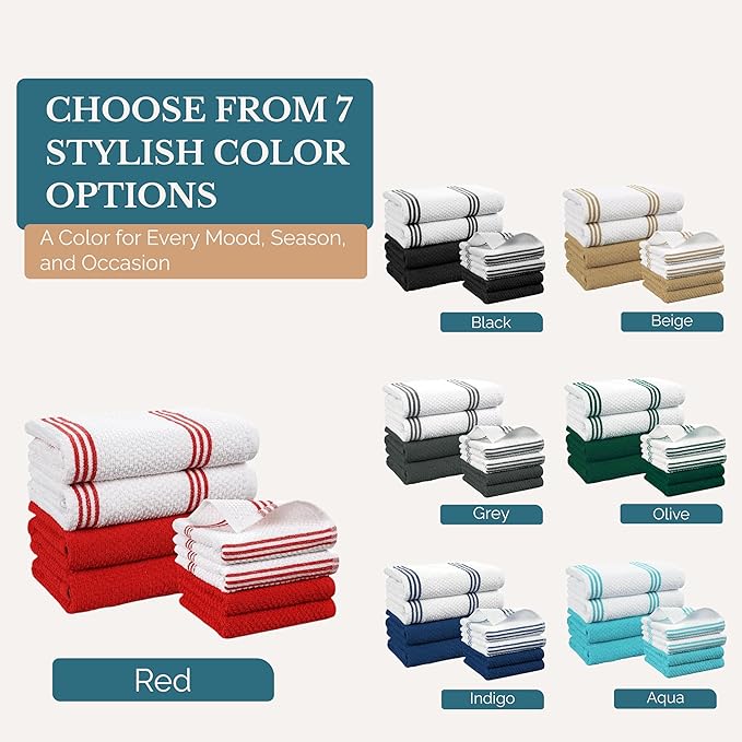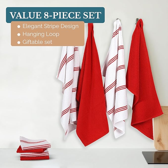 Casa Platino Dish Towels for Kitchen Drying Kitchen Towels – 8 Pc Durable Cotton Dish Towel Set – Designed for Vibrant Prep Routines and Seasonal Hosting – Red