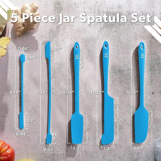 DI ORO Silicone Jar Spatulas for Scraping - Rubber Spatulas Silicone Heat Resistant - Kitchen Spatulas Nonstick Cookware Safe - Silicone Utensil Set for Blenders, Mixing, Baking, & Makeup (5pc, Blue)