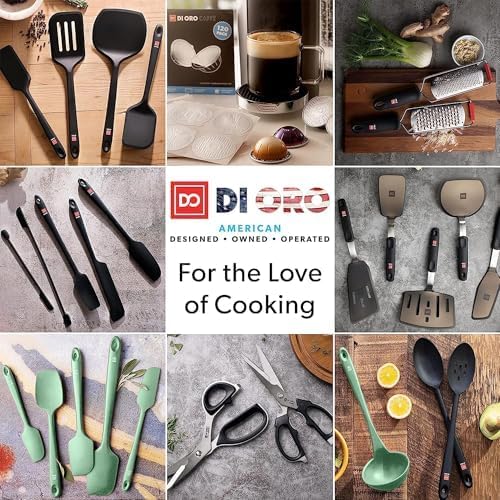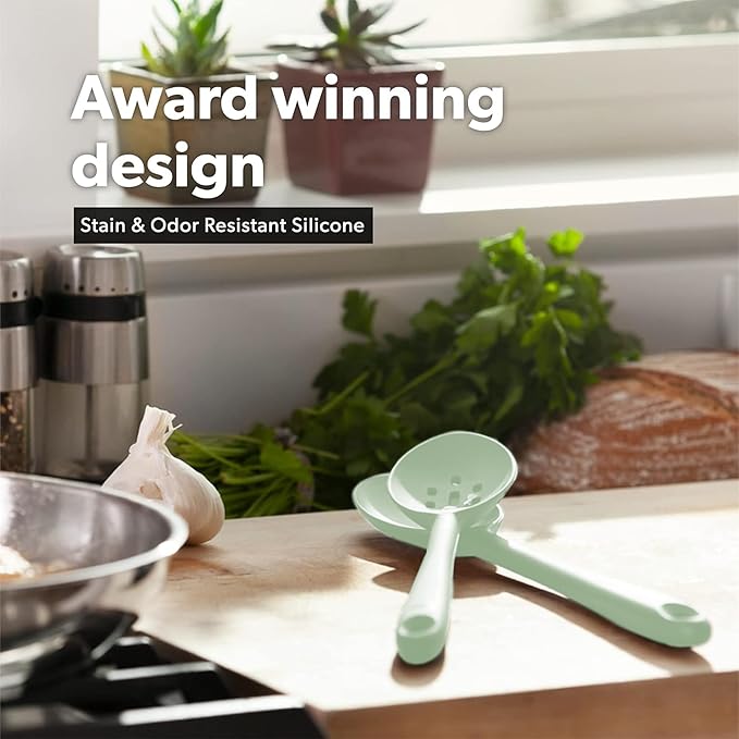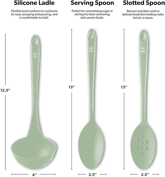 DI ORO Silicone Ladle & Spoons for Cooking – Large Kitchen Spoons for Mixing, Serving, & Stirring - Soup Ladle with Wide Bowl - High Heat Silicone Kitchen Utensils for Nonstick Cookware Safe (Sage)