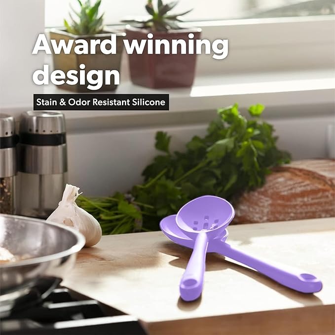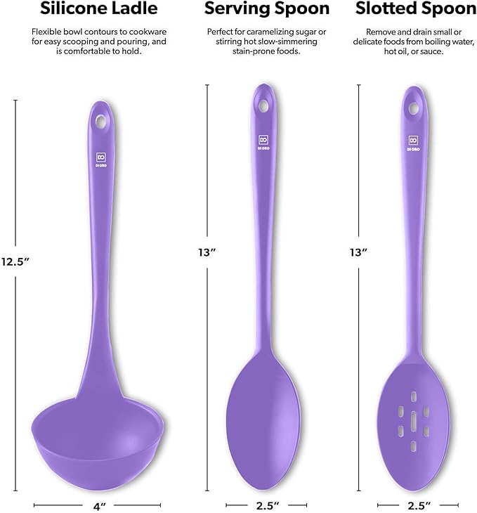 DI ORO Silicone Ladle & Spoons for Cooking – Large Kitchen Spoons for Mixing, Serving & Stirring - Soup Ladle with Wide Bowl - High Heat Silicone Kitchen Utensils for Nonstick Cookware Safe (Lavender)